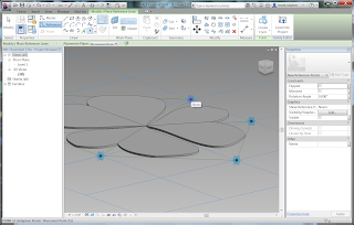 The next step is to go back to the cloverleaf to make the petal pairs curl up at the edges. The concept is to place reference points on the adaptive control points and then move them up vertically. They must move vertically in relation to the adaptive points and not the level workplane. This means the reference points must be hosted by the adaptive point.Using the 3D view, place a reference point anywhere. Use the Pick New Host to select the adaptive point that controls the corner of the petal. Hover over the placed reference point and Tab until you can select the reference point.